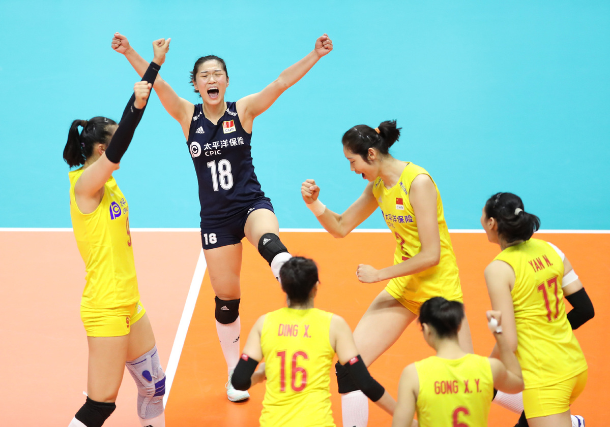 中国在2019年9月23日的国际排联女排世界杯中连续7场以3-0战胜美国。[摄影/新华社]
