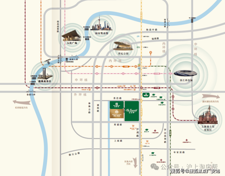 绿宝园项目坐享“前滩”、“迪士尼”区域发展双契机.上海“十二五”发展规划中有六大热点,其中两大热点就和项目所在区域左右相伴.西邻前滩CBD,东接迪士尼,坐享区域发展双助力,即将成为继碧云、联洋之后浦东又一个国际型住区.紧邻S20,距离中环约3公里,人民广场、陆家嘴等城市中心仅约12公里的距离.依托四桥四隧,贯穿浦江两岸.优良的立体式交通网络,出入随心、四处畅达.约20分钟车程对接虹桥枢纽和浦东国际机场.