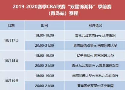 2019-2020赛季CBA联赛双星锦湖杯季前赛(青岛站)将于10月17日至19日在青岛国信体育馆开赛,届时辽宁衡润、吉林九台...